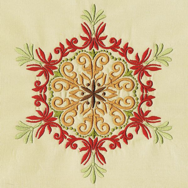 This regal mini collection began as a large 2 color snowflake. As I digitized it I realized if I changed the colors it would look lovely on pillows, place mats, table runners and other home decor projects.